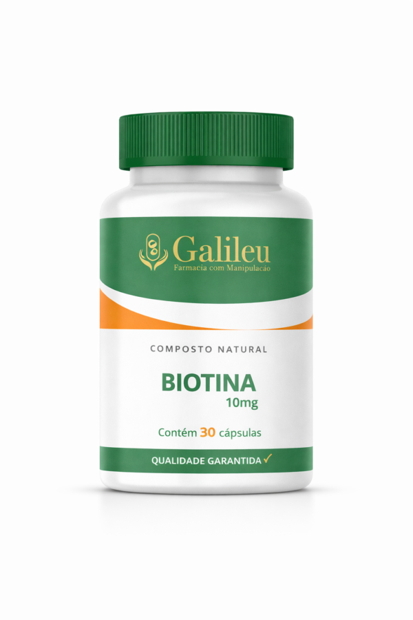 Cada cápsula contém Biotina 10mg, um nutriente essencial para a manutenção da saúde capilar, fortalecimento das unhas e equilíbrio metabólico.