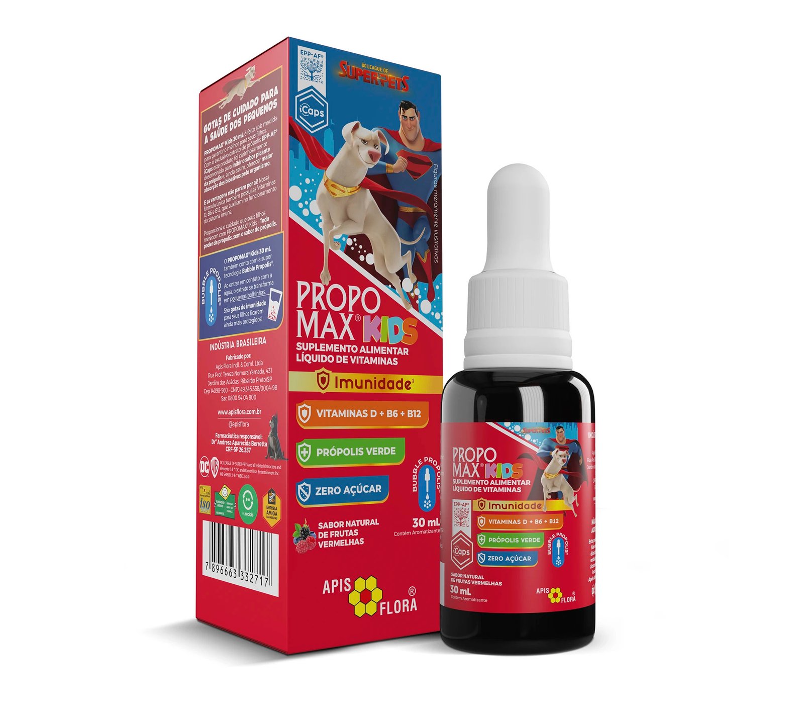 Propomax Kids Imunidade é um suplemento em gotas desenvolvido especialmente para fortalecer o sistema imunológico das crianças, unindo a potência do extrato de própolis EPP-AF® com as vitaminas D3, B6 e B12. Com sabor natural de frutas vermelhas, é ideal para o uso diário, sem álcool e sem adição de açúcar, oferecendo uma opção segura, prática e saborosa para o cuidado da saúde infantil.